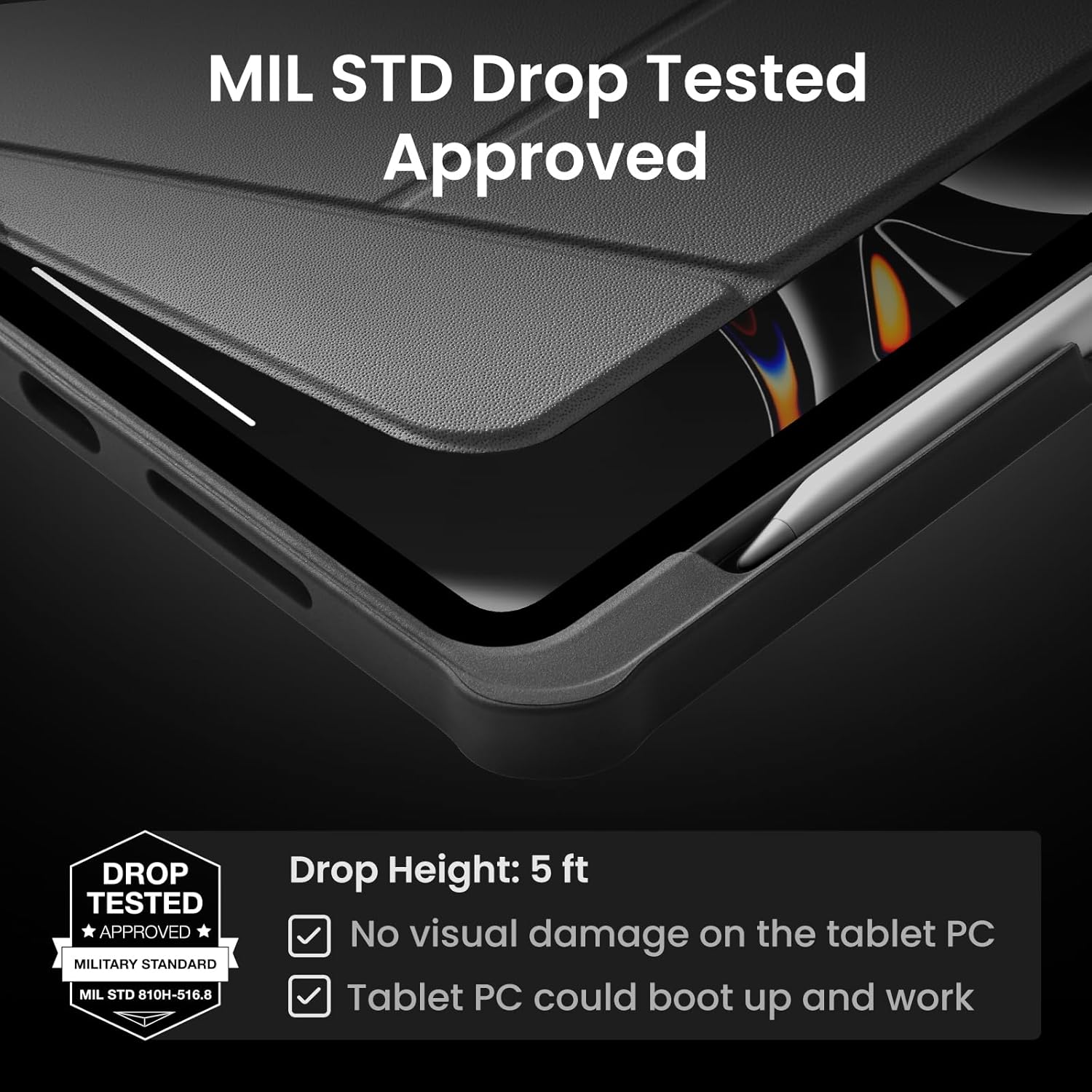 - Bao da Tomtoc đạt chứng nhận chống rơi chuẩn quân đội (MIL-STD-810H), bảo vệ iPad khỏi rơi từ độ cao lên đến 1,5m.