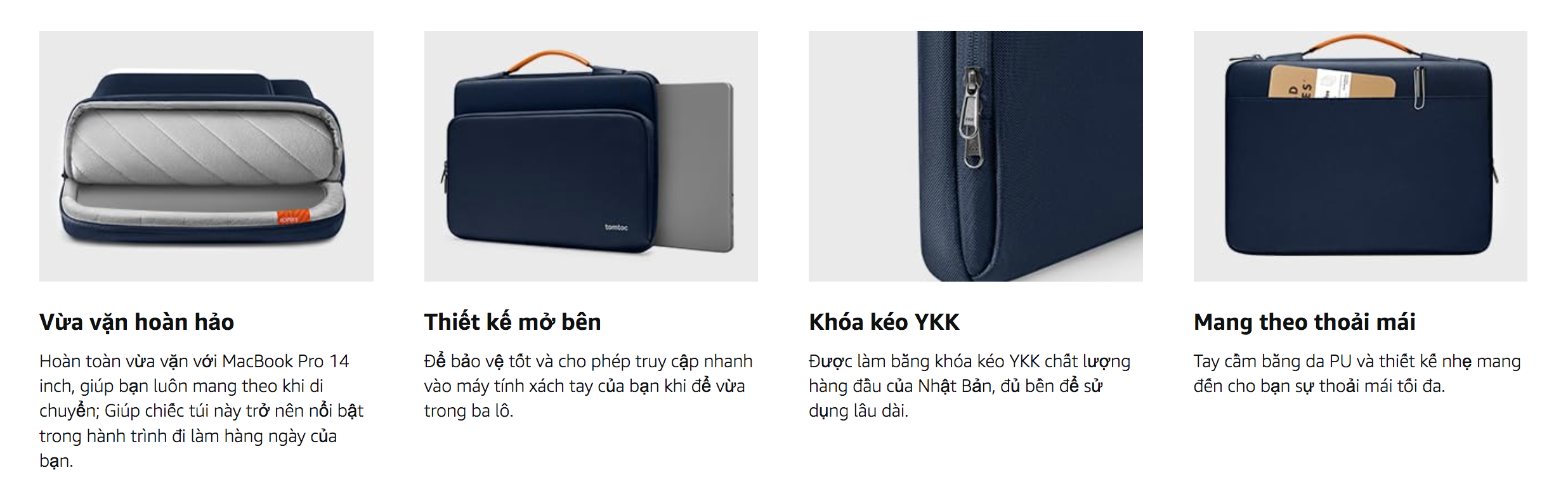 Tomtoc A14 thực sự nổi bật với thiết kế tinh tế của Tomtoc (USA), chất liệu bền bỉ và khả năng bảo vệ laptop hiệu quả. Mặc dù không có quai xách, nhưng mức giá hợp lý cùng chất lượng vượt trội khiến nó trở thành lựa chọn hấp dẫn cho người dùng. Bạn có muốn tìm hiểu thêm về các tính năng chi tiết hoặc đánh giá của những người đã sử dụng sản phẩm này không?
