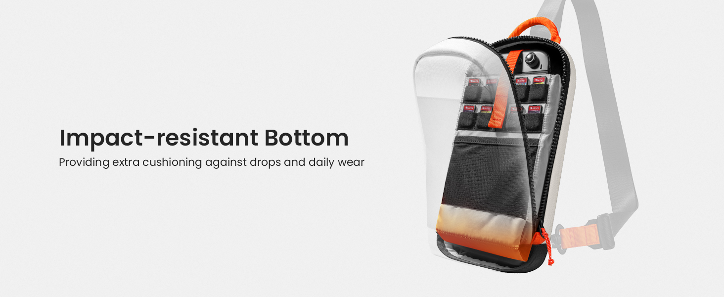 Với kết cấu EVA cứng cáp và lớp lót mềm bên trong, túi đeo chéo Tomtoc Sling G49 mang lại khả năng chống va đập cực tốt, bảo vệ màn hình Switch khỏi trầy xước, rơi vỡ. Đây chính là điều khác biệt mà các túi thông thường không thể mang lại.